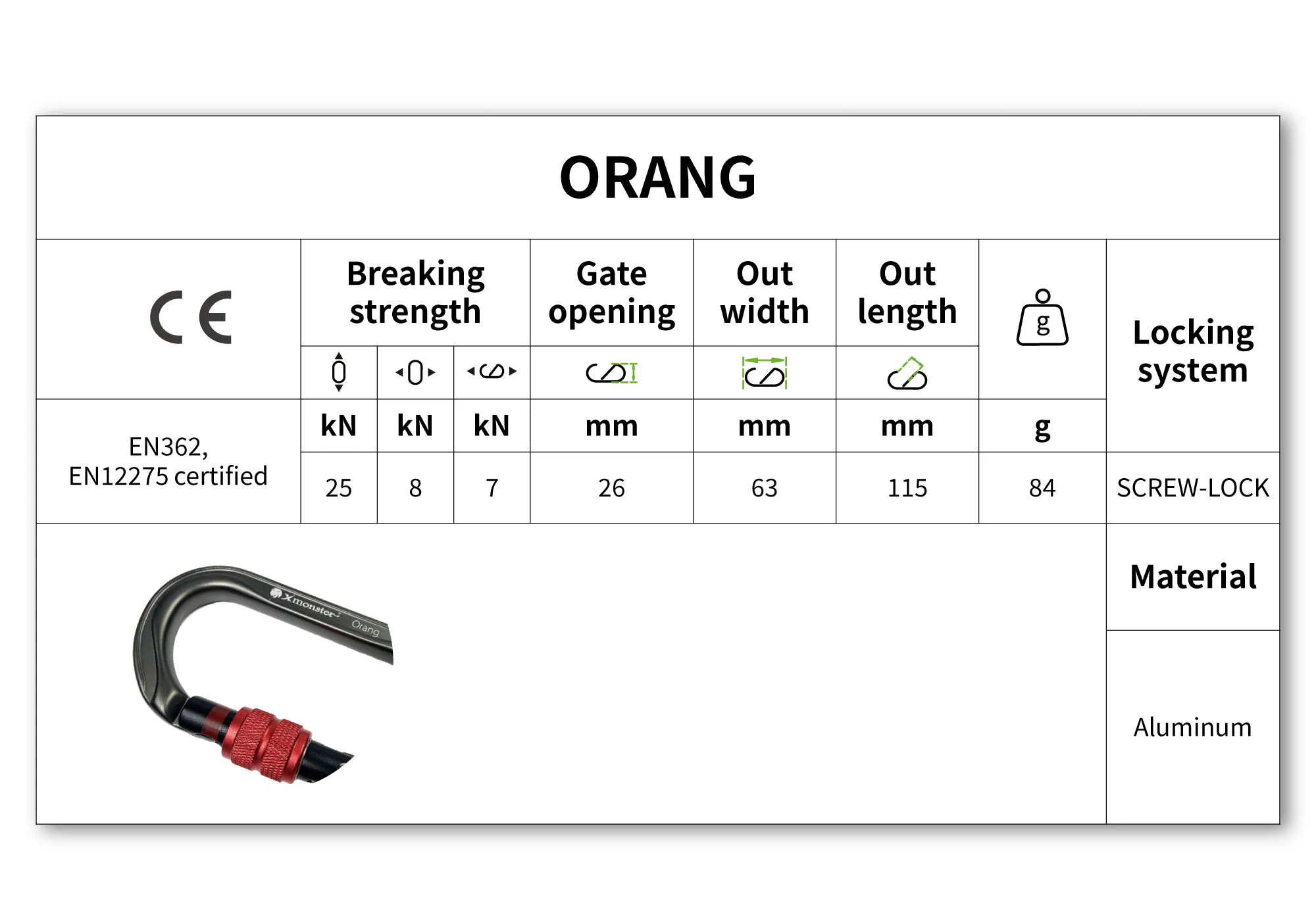 Aluminum O-shaped carabiners for aerial work and rescue operations: O-shaped carabiners are ideal for pulleys and ascenders positioning, as well as lifting and rescue. The anti-snag keylock nose design provides additional safety during use.